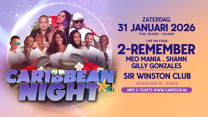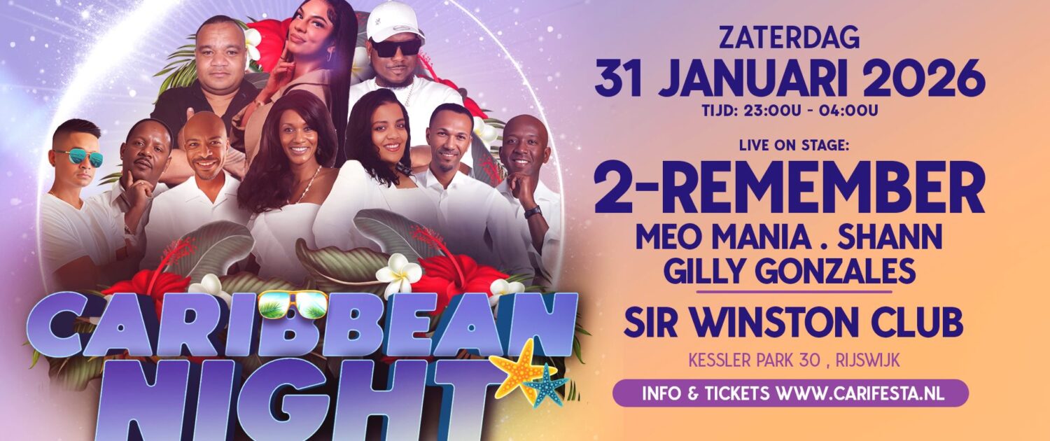 Op zaterdag 31 januari 2026 is Carifesta terug in de Sir Winston Club met een heerlijke Caribbean Night die je niet wilt missen. Deze editie staat in het teken van de populaire all-round band 2-REMEMBER, die garant staat voor heerlijke live muziek: van merengue, bubbling en bigi poku tot zouk, soca en chutney. En het wordt een extra lange set vol herkenbare hits!