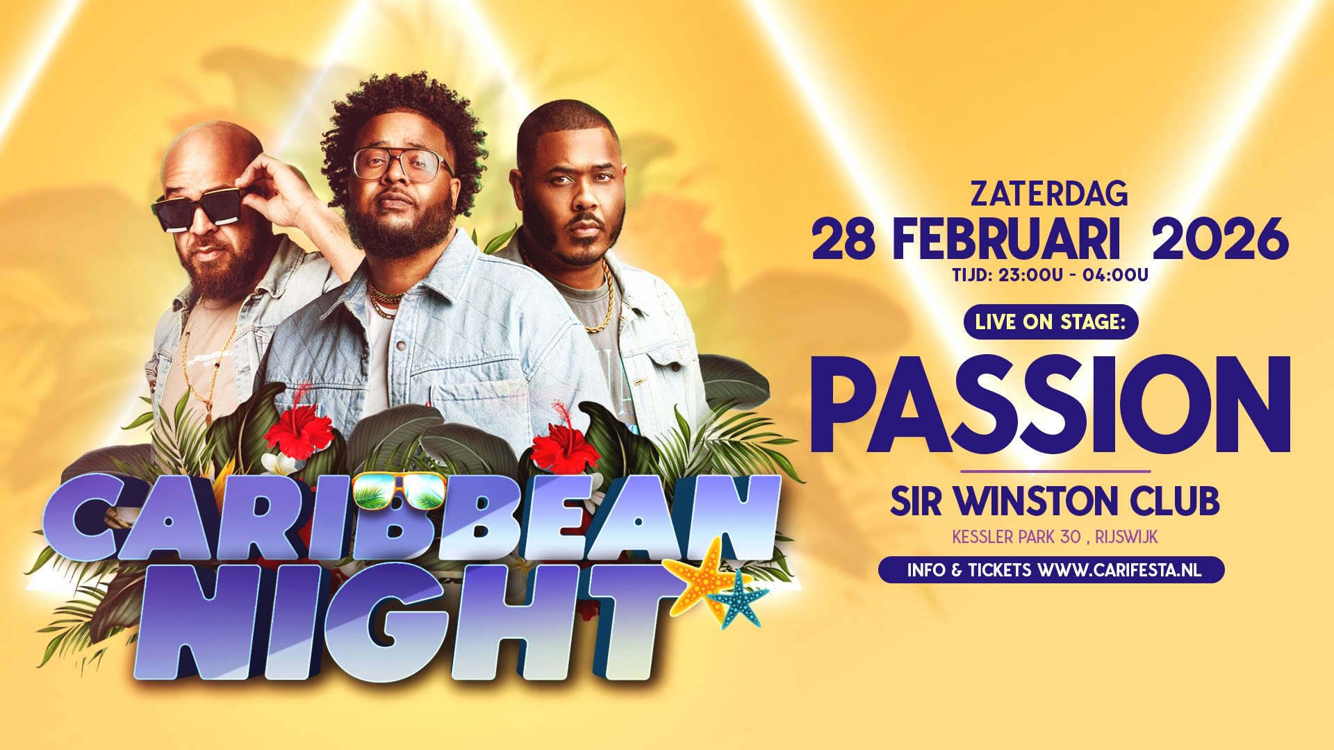 Op zaterdag 28 februari 2026 is het weer tijd voor een gezellig Caribbean Night in de Sir Winston Club te Rijswijk. Het wordt een hele speciale avond want op deze editie ontvangen we niemand minder dan de heren van PASSION! Deze topband staat garant voor heerlijke muziek, waarbij stilstaan geen optie is.